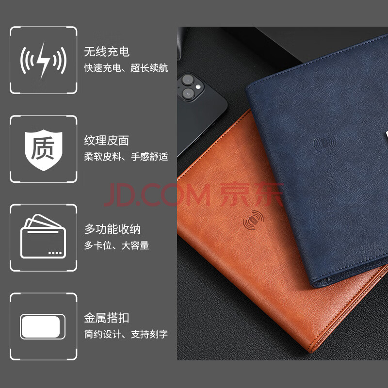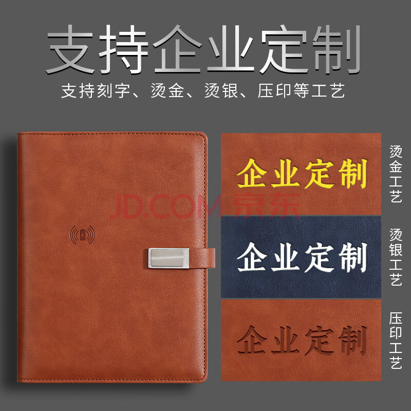 商品相册:嘉然恒 充电笔记本本子礼盒A5商务活页本记事本多功能移动电源本有线无线充电本送礼品可定制 棕色第