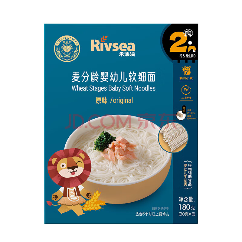商品相册:禾泱泱婴幼儿软细面原味180g 钙铁锌麦分龄面条初尝6月+第