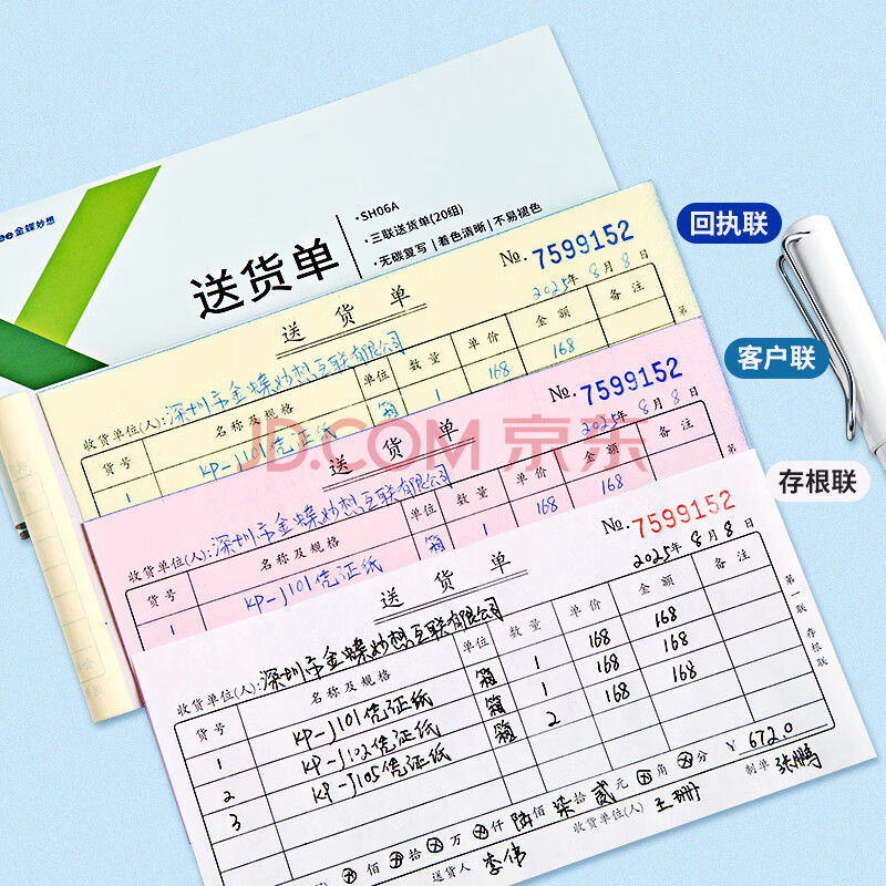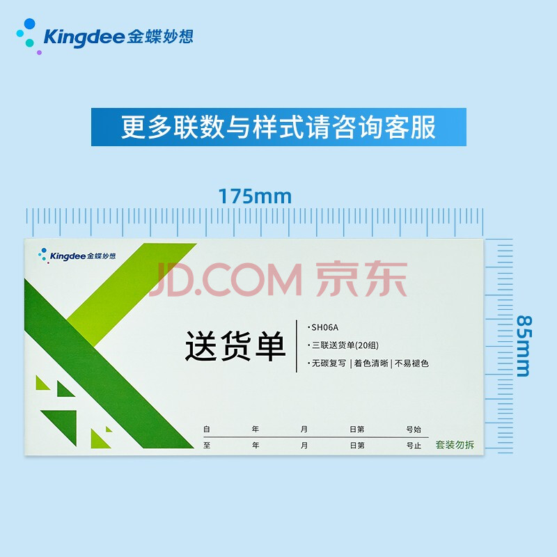 商品相册:金蝶(kingdee)三联送货单销货单清单 无碳复写收款收据 出入库单手写收据单54K 20组/本 10本/包 175*85mm第
