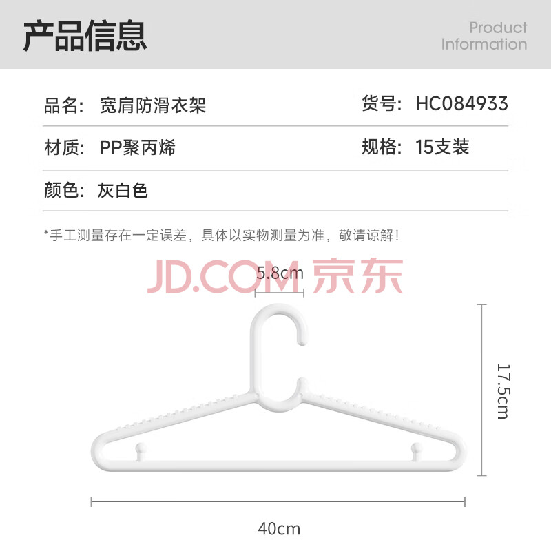商品相册:美丽雅衣架无痕晾衣架子15支塑料防滑加粗衣挂挂衣架晒衣撑阳台室内第
