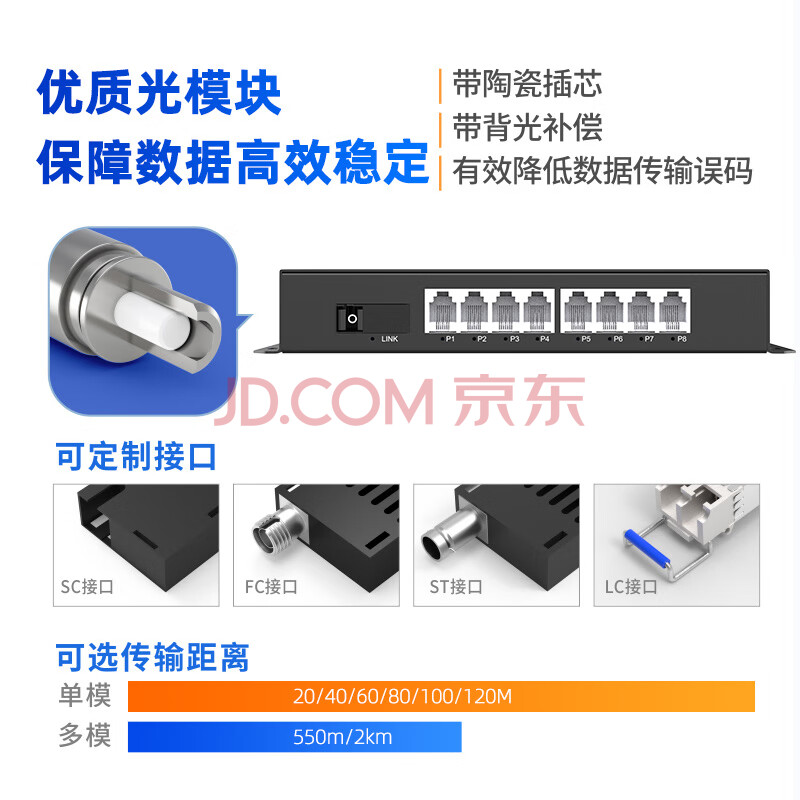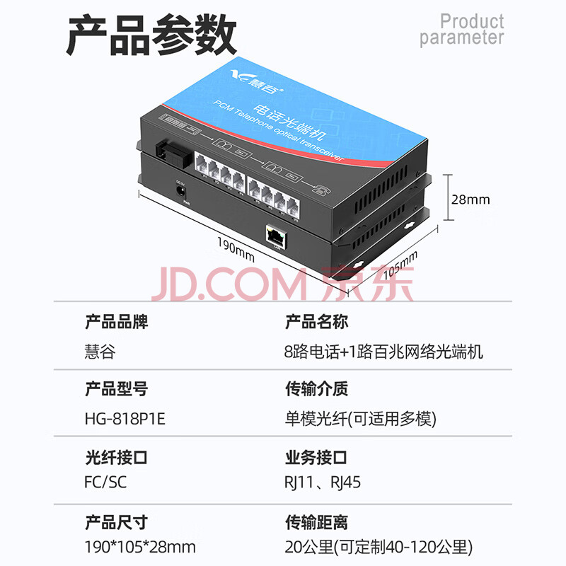 商品相册:慧谷 电话光端机8路电话+1路百兆网络 PCM语音光端机 电话光纤收发器延长器 SC接口 HG-818P1E第