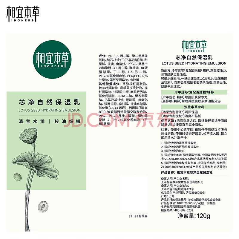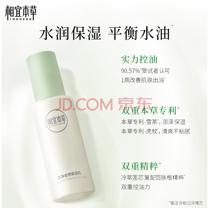 商品相册:相宜本草芯净自然保湿乳120g 双重控油保湿乳液护肤品第
