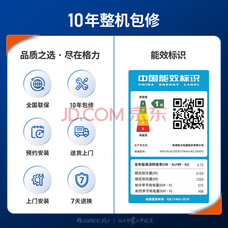 商品相册:格力2匹京桂II 新一级能效变频冷暖净菌自洁 纯铜管立柜式空调柜机 KFR-50LW/(50587)FNhAd-B1(J第