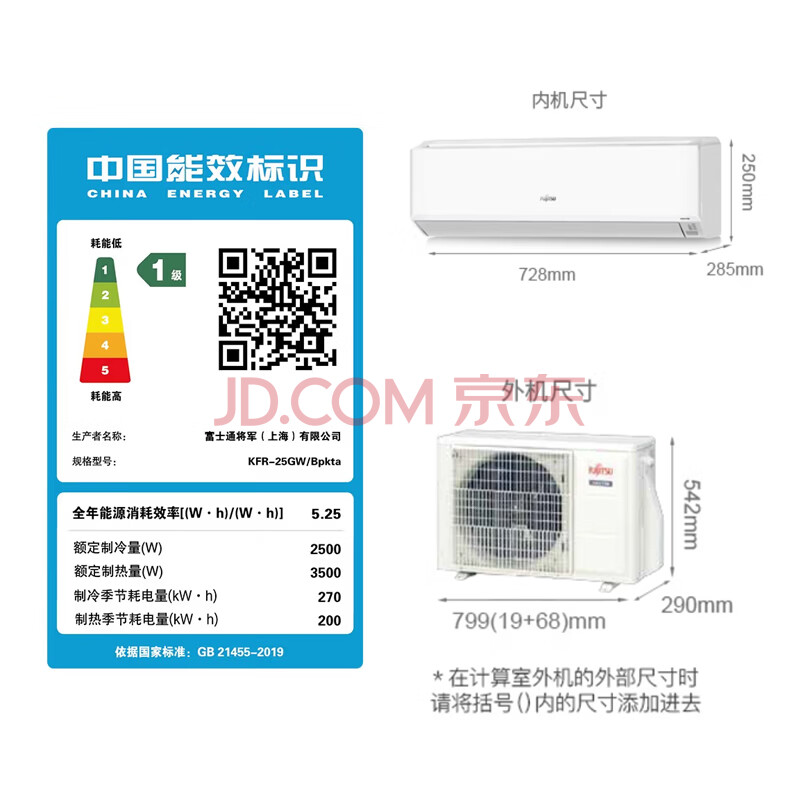 商品相册:富士通空调诺可力T系列 1匹1级能效11-16㎡适用 日系铜管空调 变频挂机ASQG09KTCA (KFR-25GW/Bpkta)第