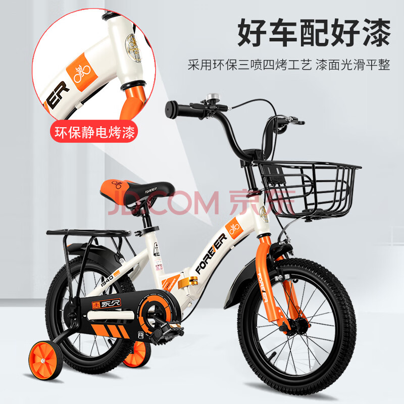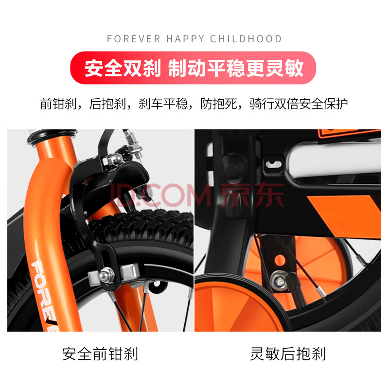 商品相册:永久(FOREVER)儿童自行车男女款小孩单车可折叠脚踏车4-6-8-10岁辅助轮18寸红色第
