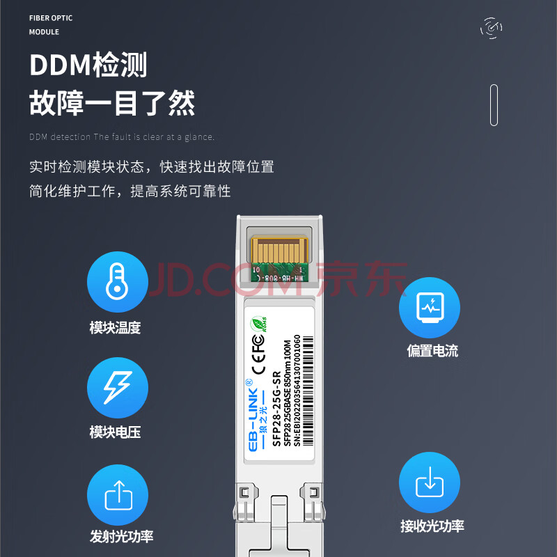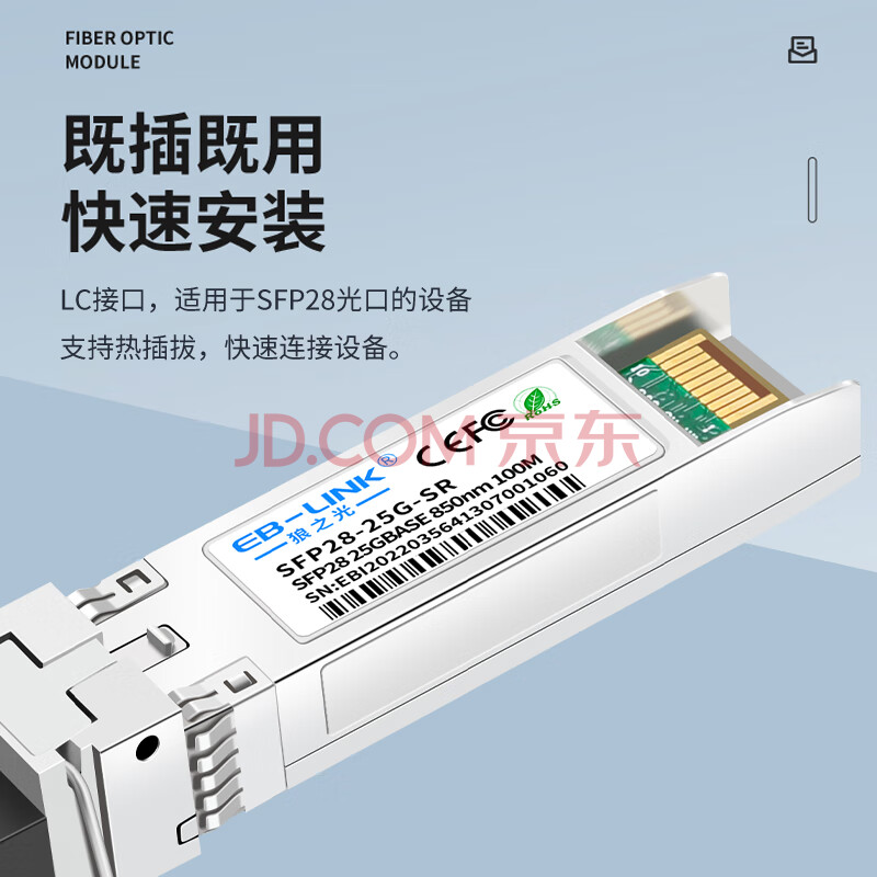 商品相册:EB-LINK 25G多模双纤光模块SFP28-25G-SR(850nm 100米 LC接口)兼容华为锐捷第