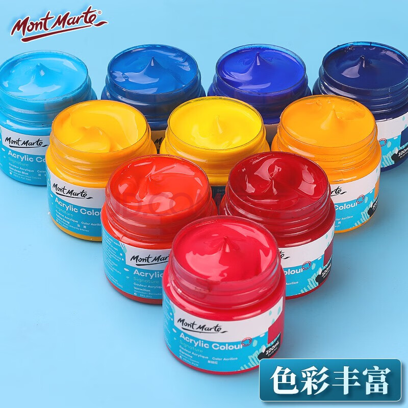 商品相册:蒙玛特(MontMarte)丙烯颜料18色100ml丙烯画颜笔画布本刮刀调色盘勾线笔工具箱VSXBX18S100ML002美育工具第