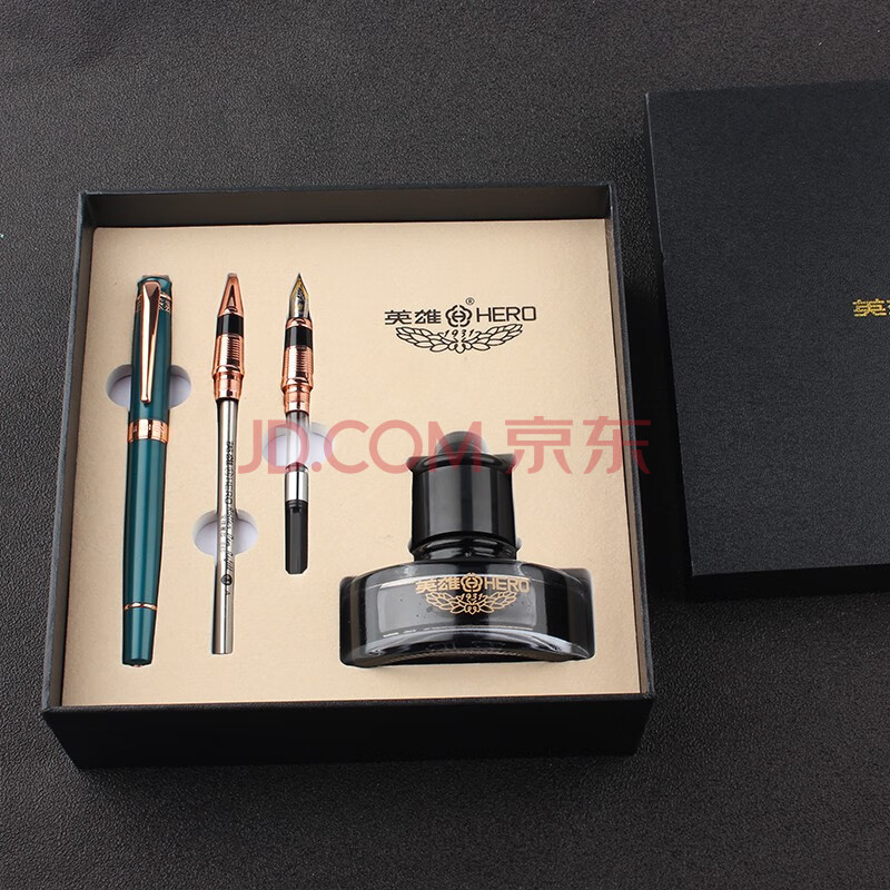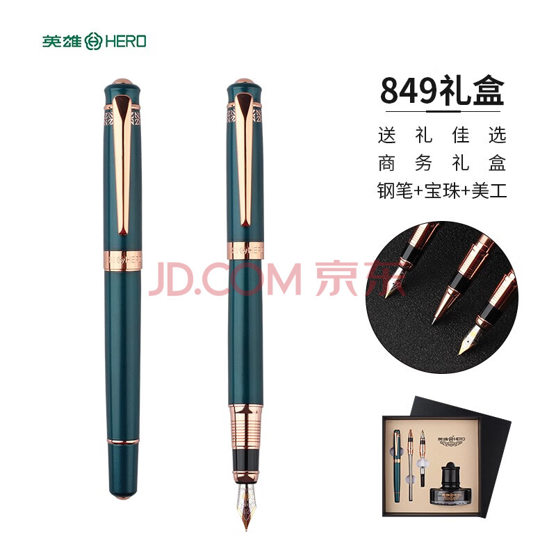 商品相册:英雄(HERO)钢笔 礼盒849墨绿色三件套(铱金笔+宝珠+美工)办公礼品墨水礼盒套装第