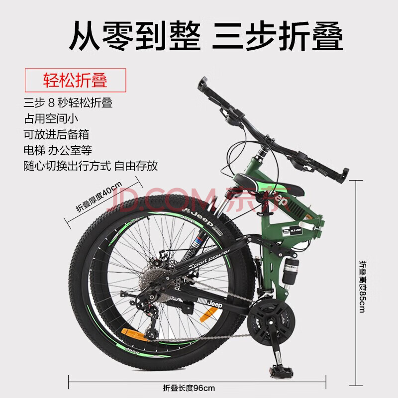 商品相册:Jeep吉普自行车折叠山地男女学生24英寸24速双减震单车战神-苍岭绿第