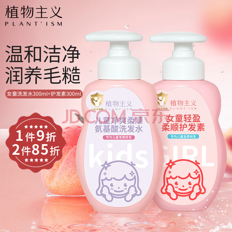 商品相册:植物主义儿童洗发水护发素套装无硅油柔顺发丝不毛躁3-12岁女孩专用洗发露第