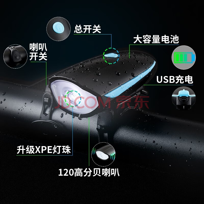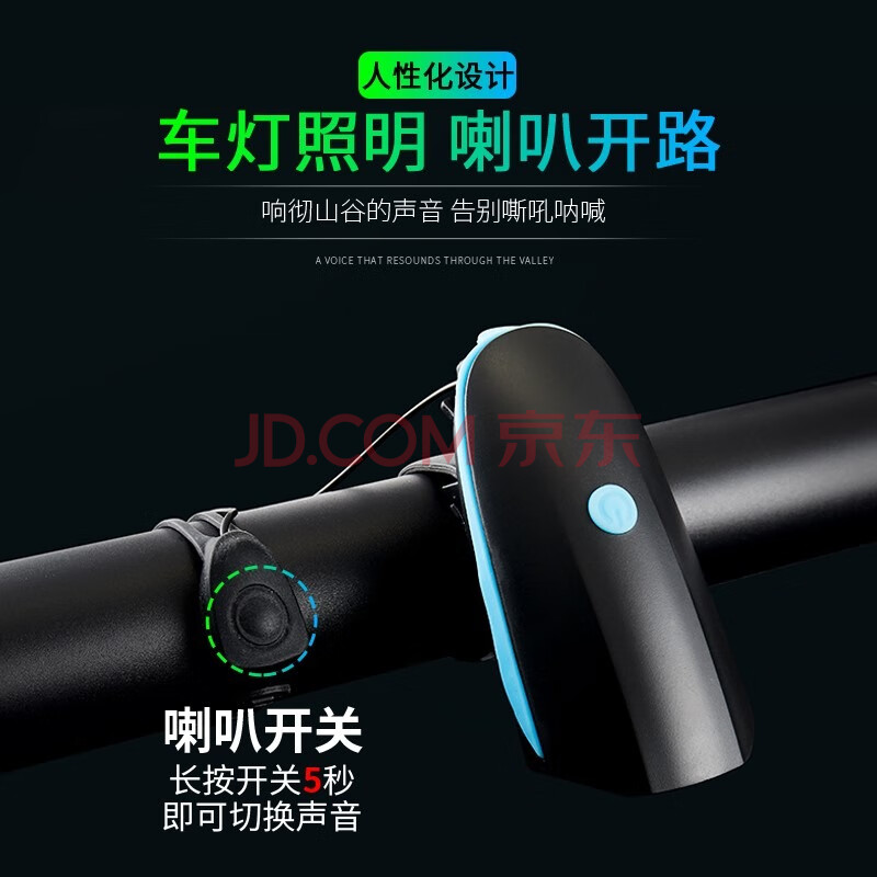 商品相册:BIKEBROS自行车灯夜骑充电前灯强光山地车灯儿童单车铃铛喇叭骑行装备配件 蓝色喇叭灯第