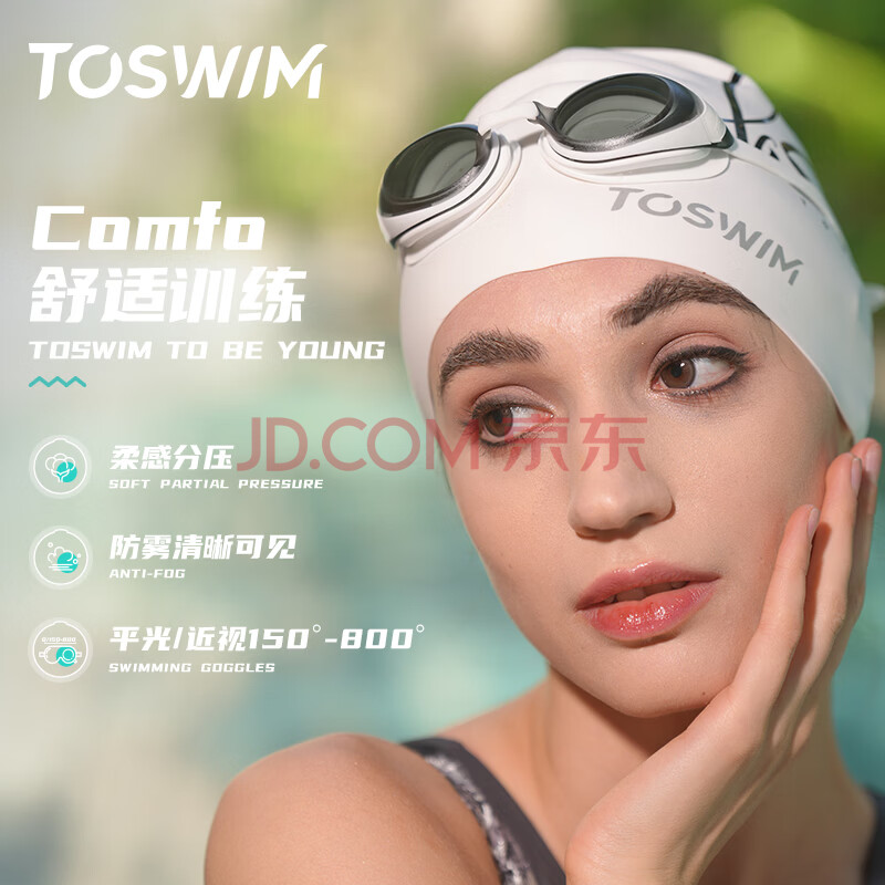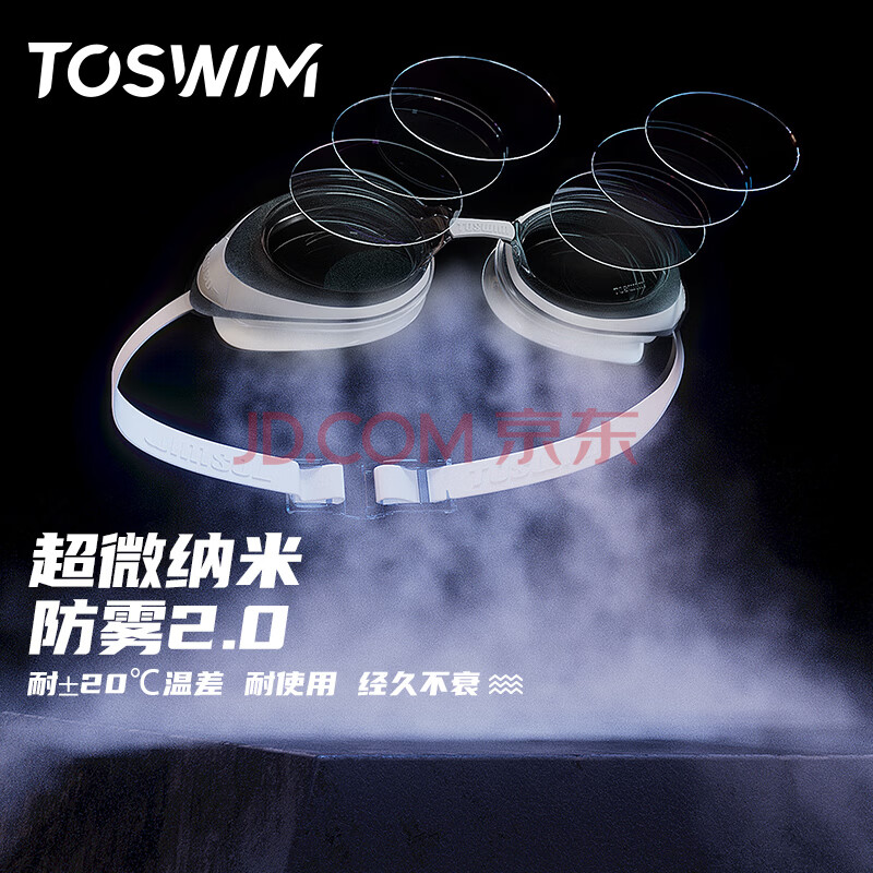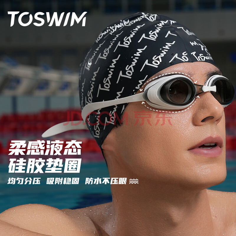 商品相册:TOSWIM拓胜泳镜防水防雾游泳眼镜高清近视男女大框游泳镜 鱼肚白600度第