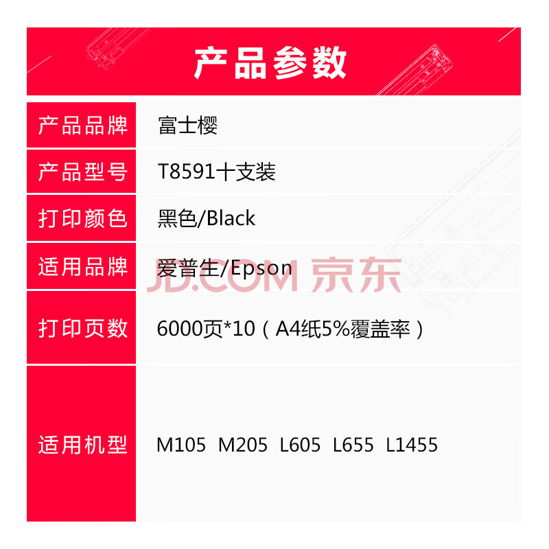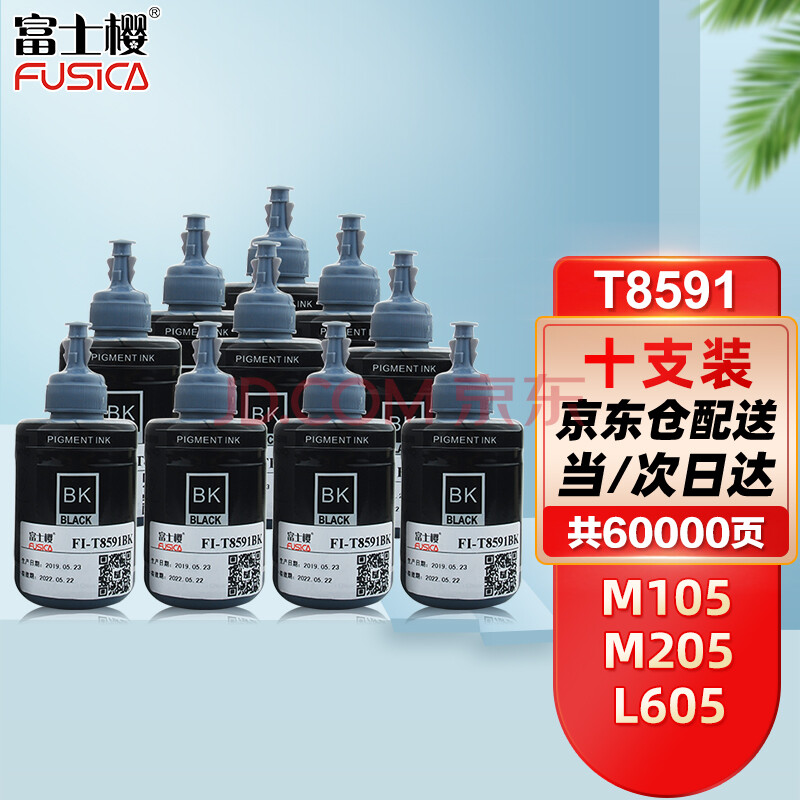 商品相册:富士樱M105黑色颜料墨水 859墨水10支装 适用爱普生M105/M205/L605/L655/L1455 T859打印机墨盒第