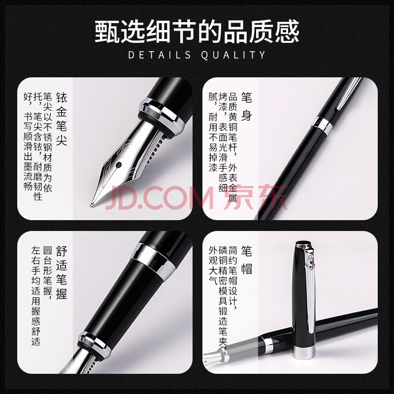 商品相册:毕加索(pimio)钢笔礼盒墨水套装签字笔高端商务成人生日开学礼物男女学生书法练字开学礼品笔0.5mmT717亮黑银夹第