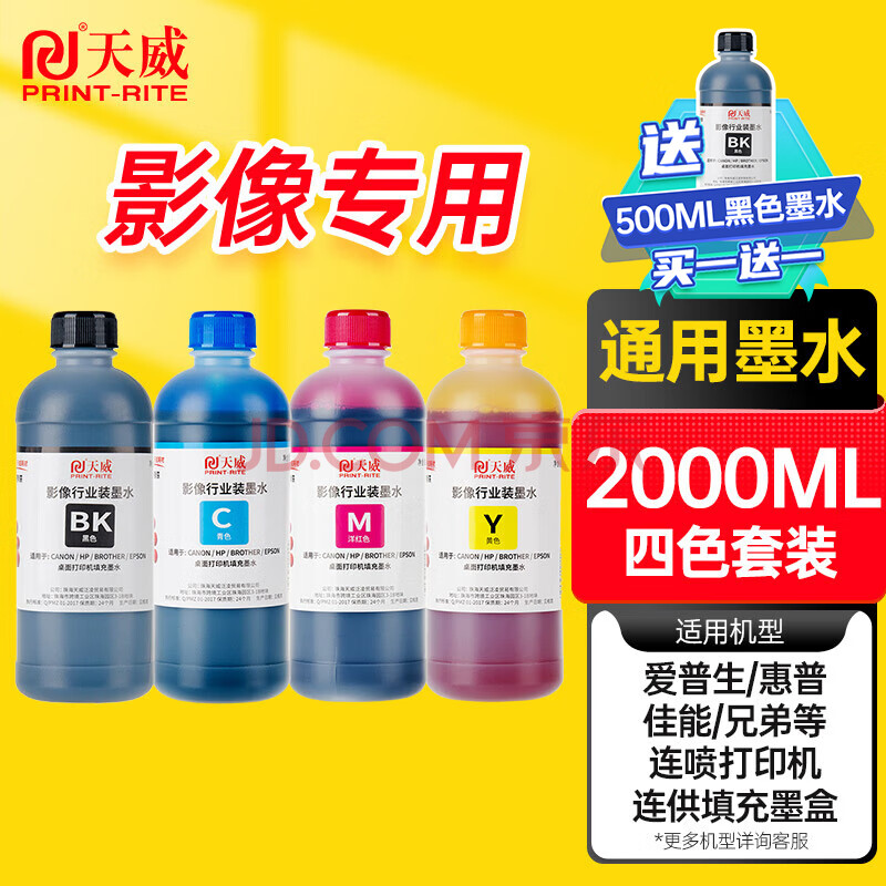 商品相册:天威适用爱普生惠普佳能兄弟喷墨打印机墨水 通用HP803 680 805 845墨盒加墨水 500ML连供填充墨水 四色套装第