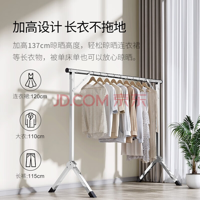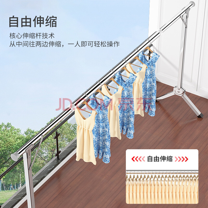 商品相册:妙美晾衣架落地【免安装伸缩2米】室内晾衣杆挂衣架折叠阳台晒衣架第