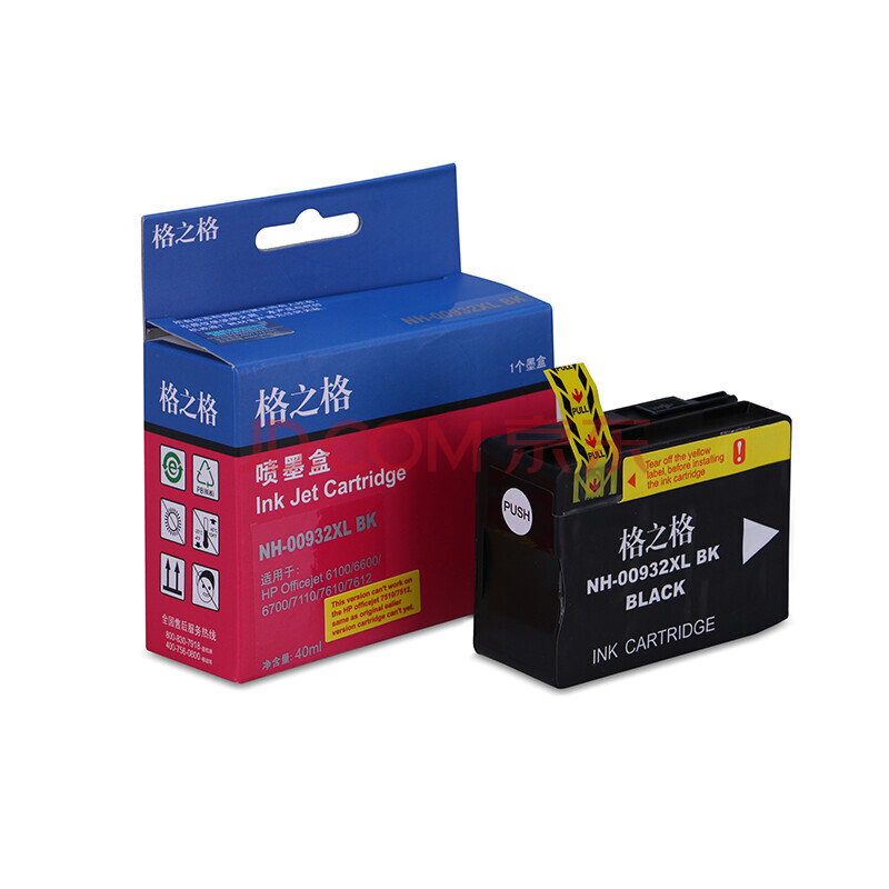 商品相册:格之格 932XL NH-00932XLBK 打印量920页 适用惠普6700 墨盒 (计价单位:盒) 黑色第