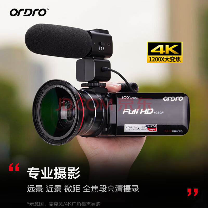 商品相册:欧达(ORDRO)Z82摄像机高清专业直播录像机数码摄像机便携手持DV 10倍光学变焦 120倍智能变焦 vlog短视频第