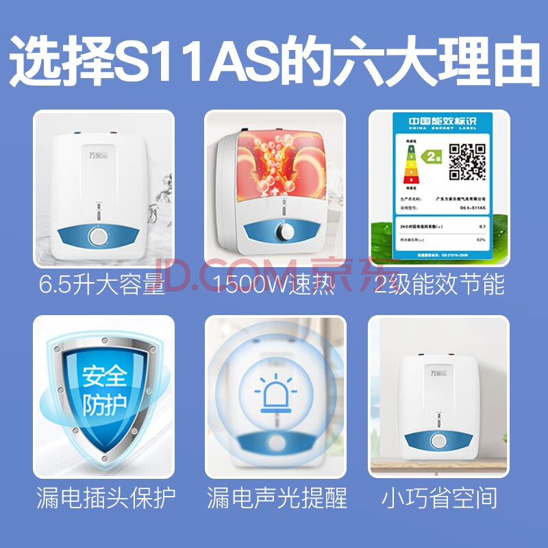 商品相册:万家乐【安全耐用S11AS】6.5升漏电报警 1500W速热 上出水家用厨房储水式电热水器小厨宝第1张/共8