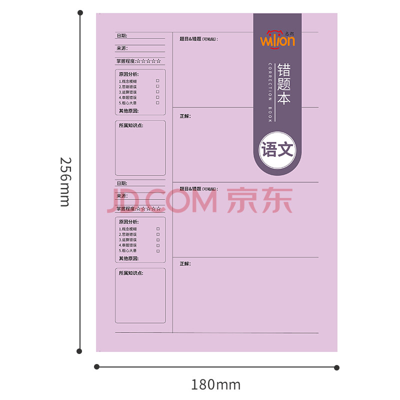 商品相册:惠朗(huilang)B5语文错题本 初高中学生纠错本改错本 学生复习笔记本子4本装 7333第