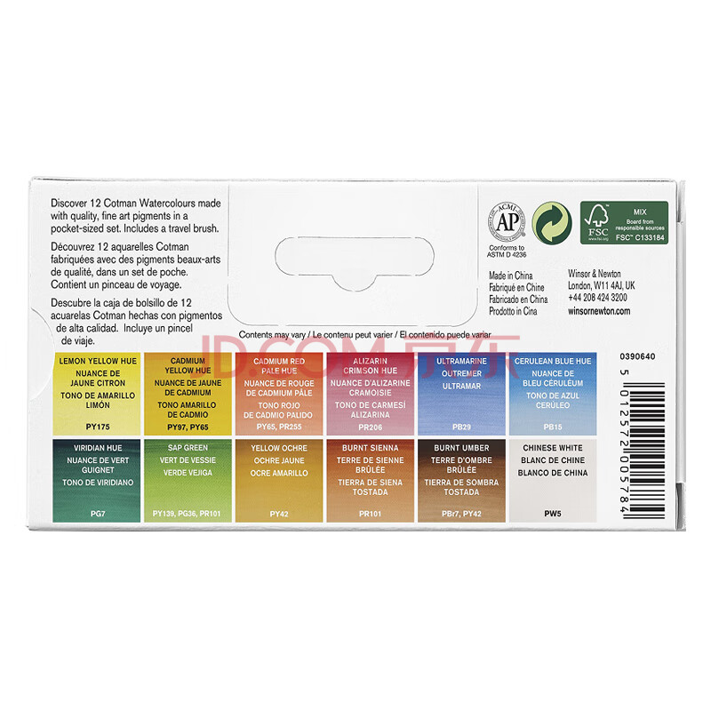 商品相册:温莎牛顿【弗洛伊德同品牌】歌文水彩颜料固体水彩户外写生水彩绘画颜料12色半块袖珍套第