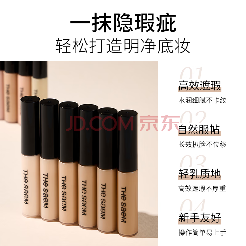 商品相册:得鲜(the saem)遮瑕液棒高遮瑕不卡粉遮痘印斑点 02#米黄色6.5g方便携带第