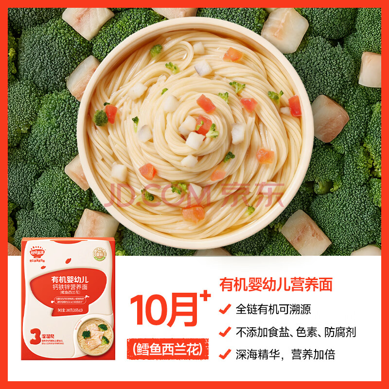 商品相册:秋田满满有机婴幼儿面条鳕鱼西兰花味200g 营养面宝宝辅食线面100%真验厂第