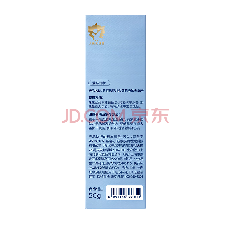 商品相册:戴·可·思婴儿金盏花爽身乳50g*2 新生儿爽身痱子粉舒缓泛红去痱子无滑石粉第