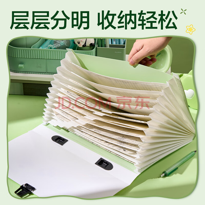 商品相册:得力(deli)13格A4手提风琴包学生试卷收纳文件夹 熊猫活页袋/莫兰迪资料文件保护小学初高中颜色随机 72566第