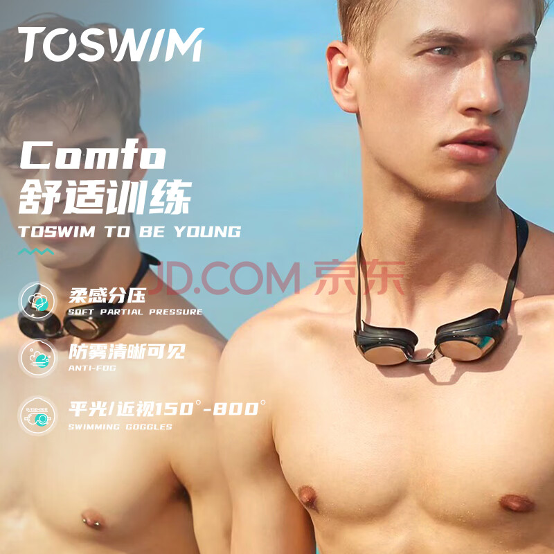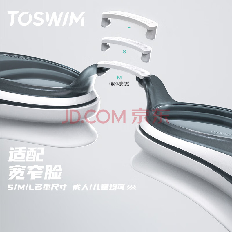 商品相册:TOSWIM拓胜泳镜 防水防雾游泳眼镜高清近视男女大框游泳镜 鱼肚白400度第