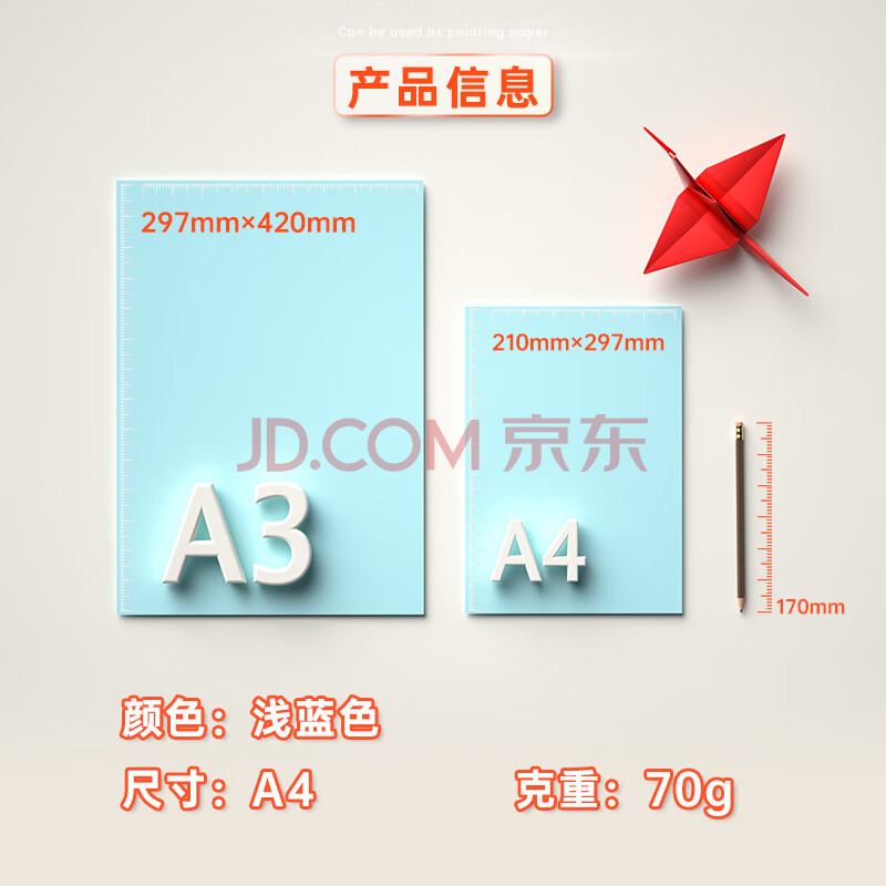 商品相册:得力(deli)A4 70g浅蓝色复印纸 彩色打印纸 儿童手工DIY折纸剪纸彩纸 非硬卡纸 100张/包 7391【经典热销】第