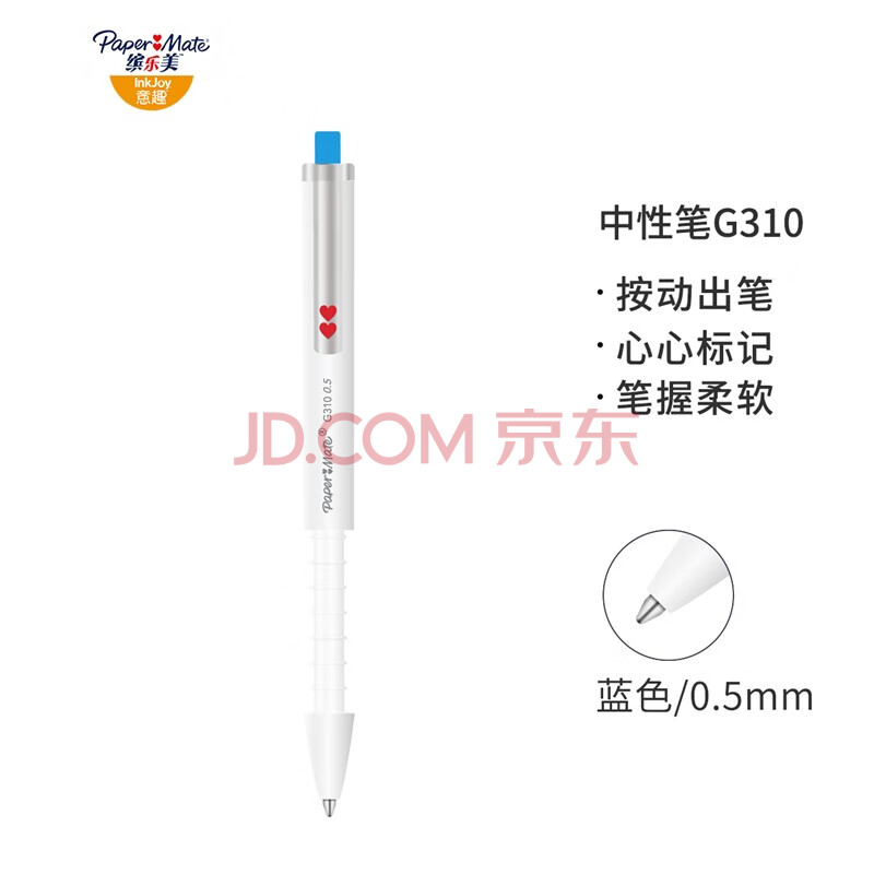 商品相册:【开学必备】缤乐美(Paper Mate)中性笔0.5mm高颜值按动式签字笔学生书写心心笔系列G310蓝色单支装第