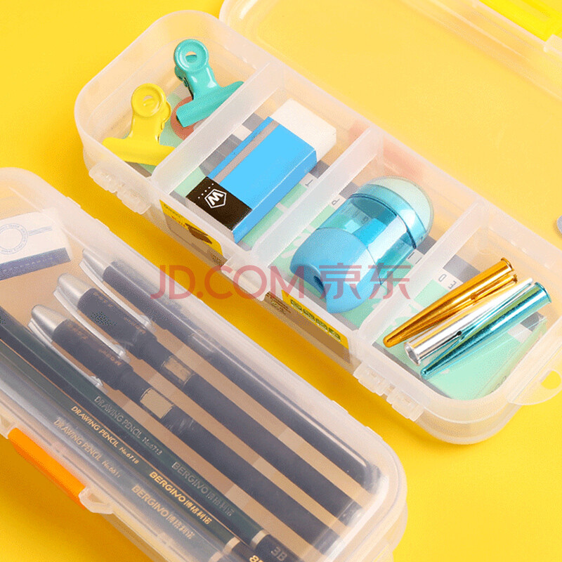 商品相册:递乐 网红文具盒铅笔盒简约男女双层透明多功能隔断拼接儿童小学生大容量塑料磨砂笔盒双层文具盒 6319透明粉第