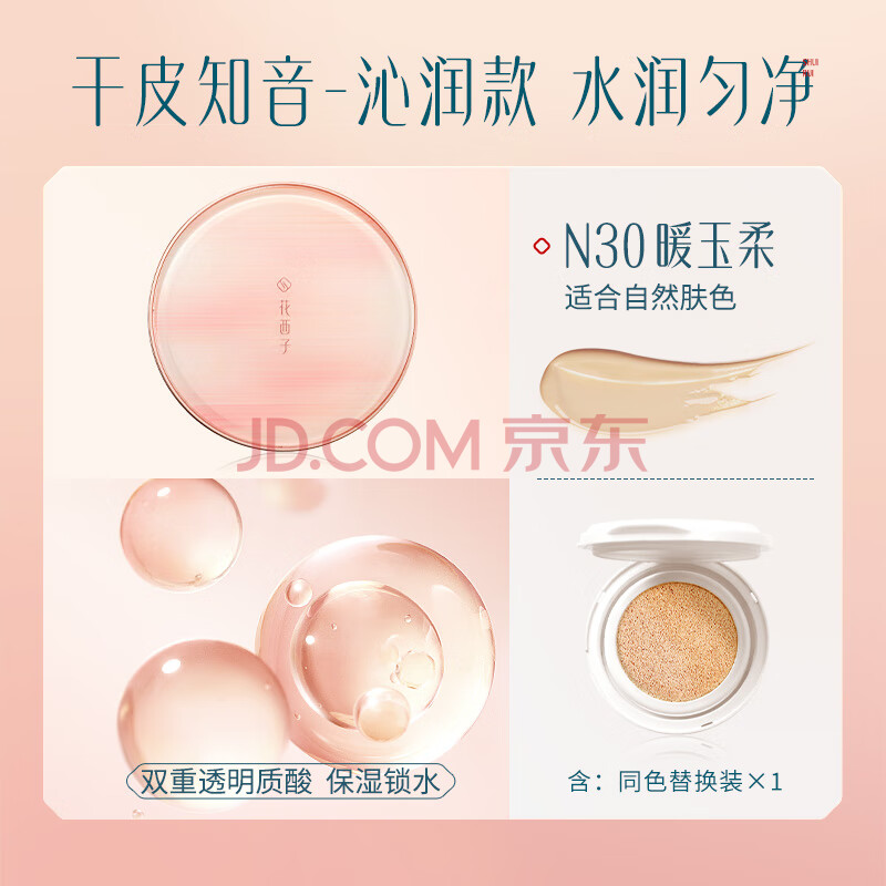 商品相册:花西子小粉盒气垫单层气垫干皮N30遮瑕持久服帖轻薄粉底液BB生日礼物女第