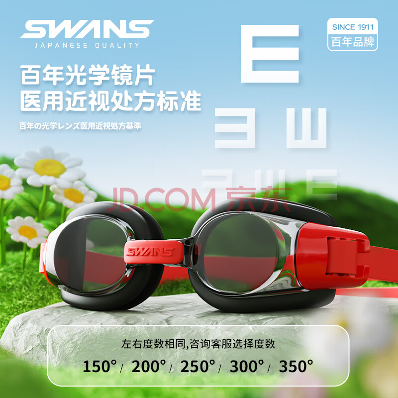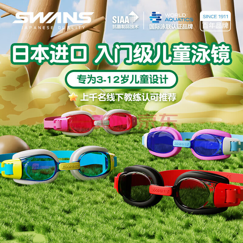 商品相册:SWANS儿童泳镜日本进口男女童防水防雾高清大框游泳眼镜专业SW29黑红第