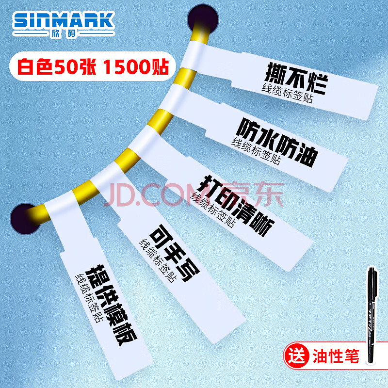 商品相册:欣码(Sinmark) 白色A4线缆网络布线不干胶A4网线标签贴纸防水 通信机房线缆标签纸 P型 激光打印50张第