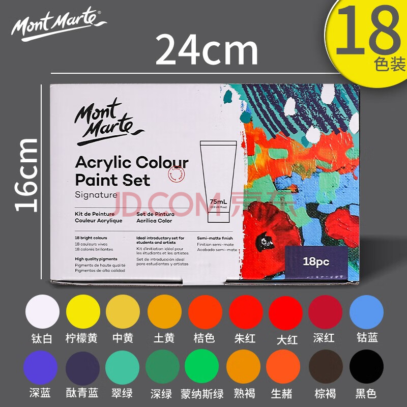 商品相册:蒙玛特(MontMarte)丙烯颜料18色75ml丙烯颜料画画diy涂鸦美术绘画防水墙绘颜料VMSCH1875美育工具第