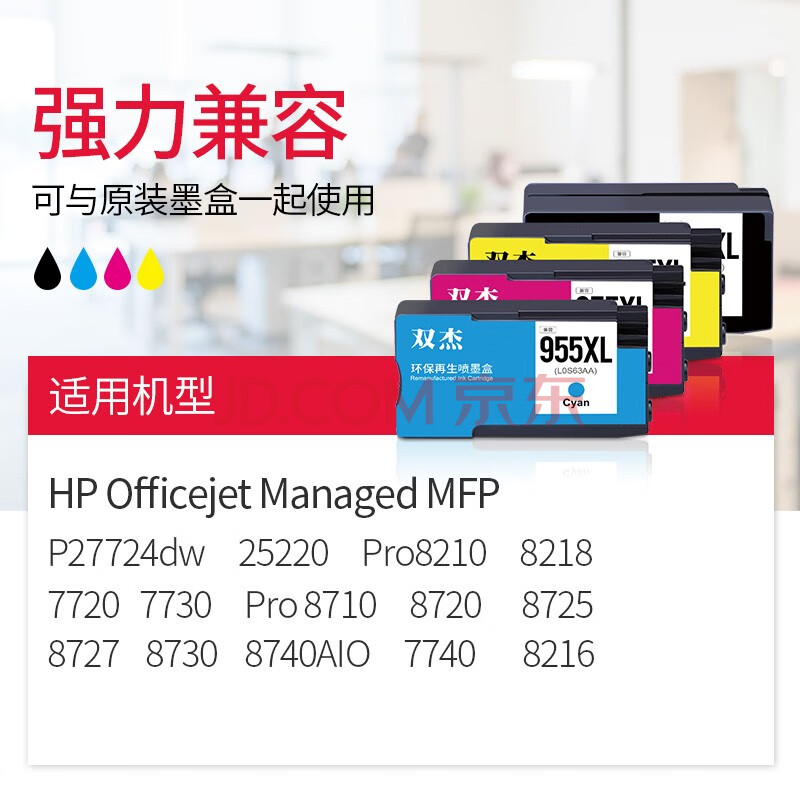 商品相册:双杰955XL墨盒黑色2支适用惠普7730墨盒7720 7740 8210 8720 8710 8730 8725 8218 8740 8216 8727 hp955墨盒第