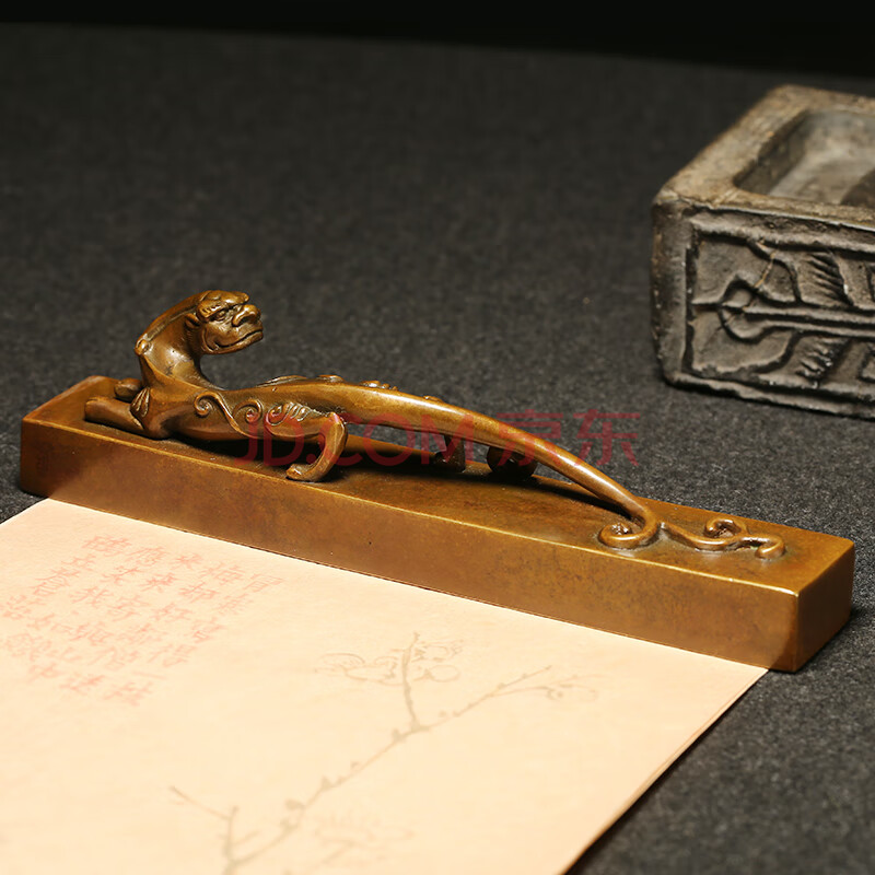 商品相册:漢墨 古铜镇纸镇尺 大号铜器笔置笔搁毛笔架 文房四宝礼品礼盒装铜器摆件把玩文镇第1张/共5