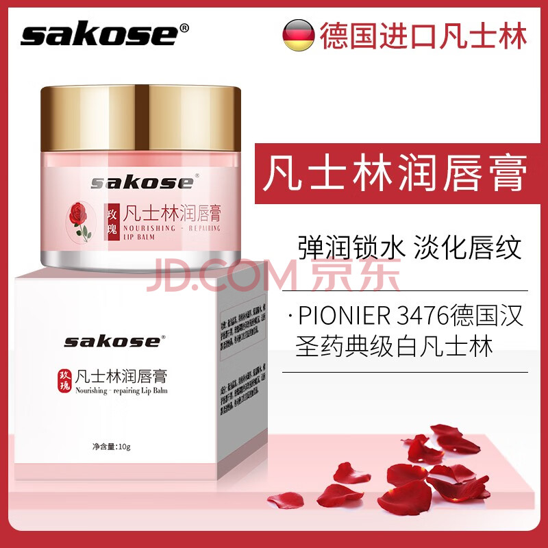 商品相册:sakose玫瑰凡士林润唇膏10g 夜间呵护唇膜保湿淡化唇纹去死皮玫瑰花蕾味第