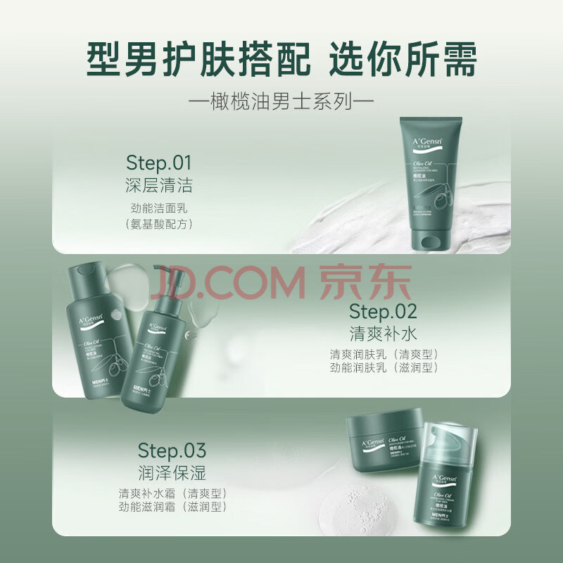 商品相册:安安金纯A'Gensn橄榄油男士劲能滋润霜60g 滋润保湿清爽舒适男士面霜第