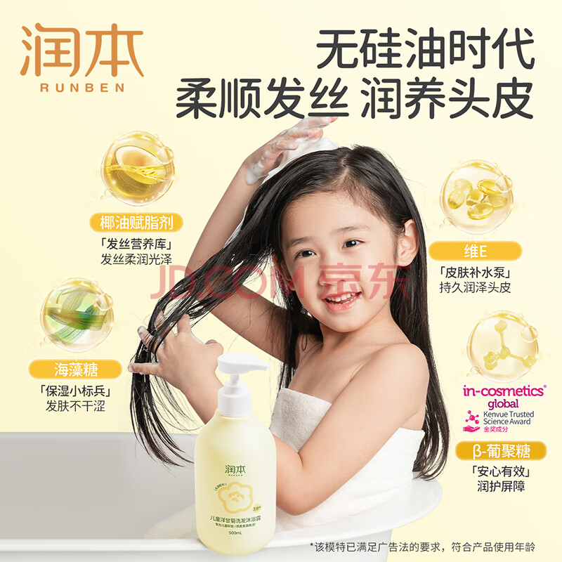 商品相册:润本儿童洋甘菊洗发水沐浴露婴儿宝宝洗护二合一温和保湿洗澡500ml第