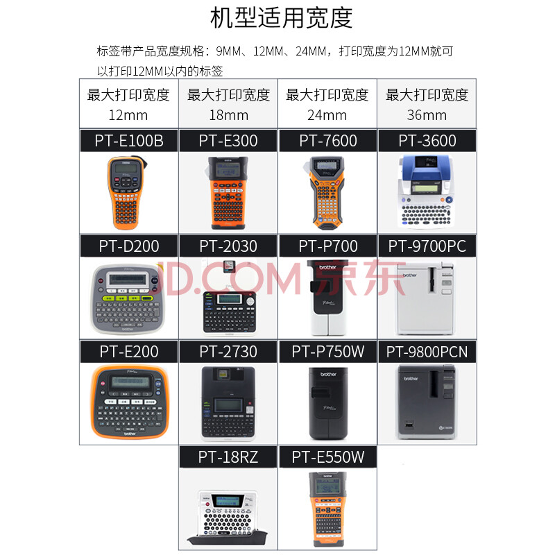 商品相册:天色TZE-z231标签色带适用兄弟标签机色带 12mm白底黑字PT-D200 210 2030 2730 9700 3600 P750W E550W第