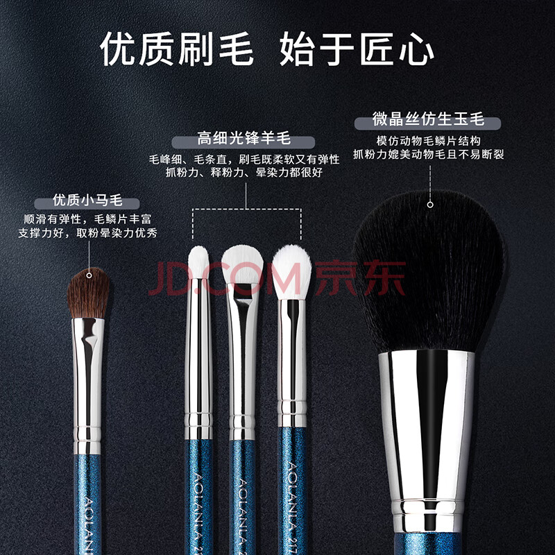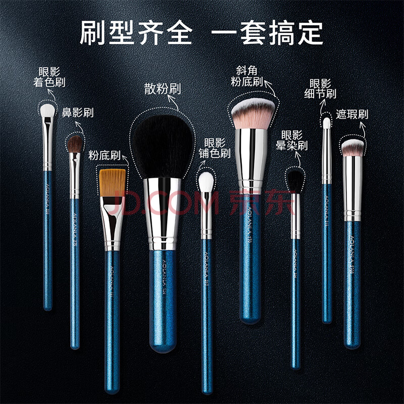 商品相册:AOLANLA大师级珠光蓝9支化妆刷套装带化妆包初学者美妆工具礼物送女友第1张/共5