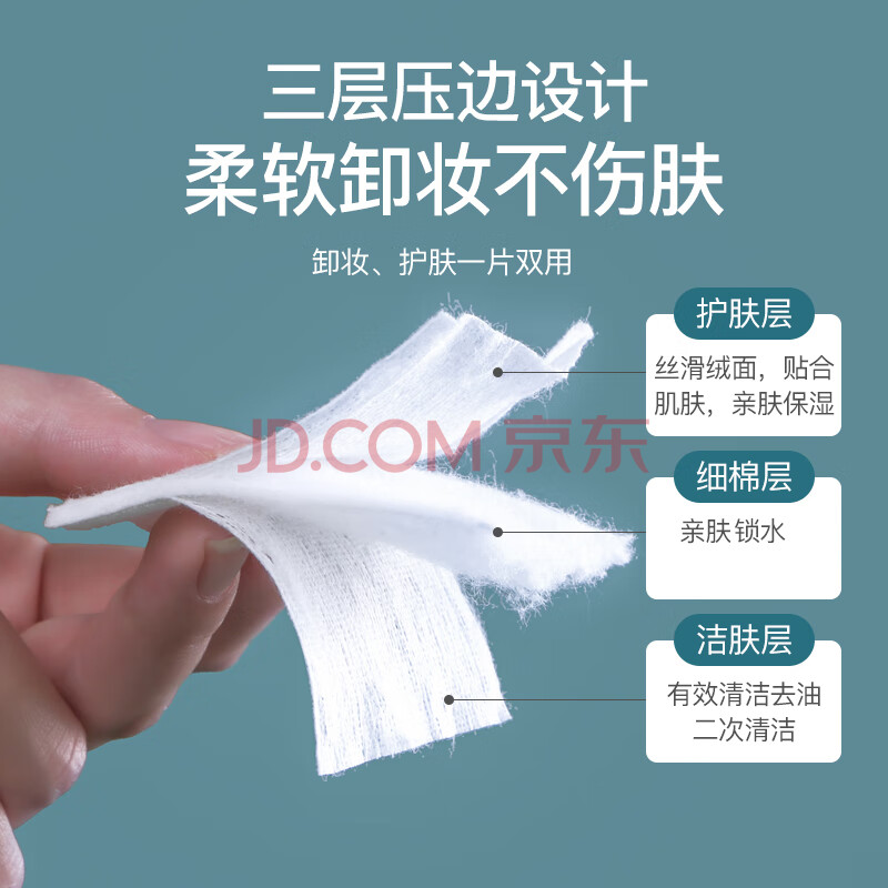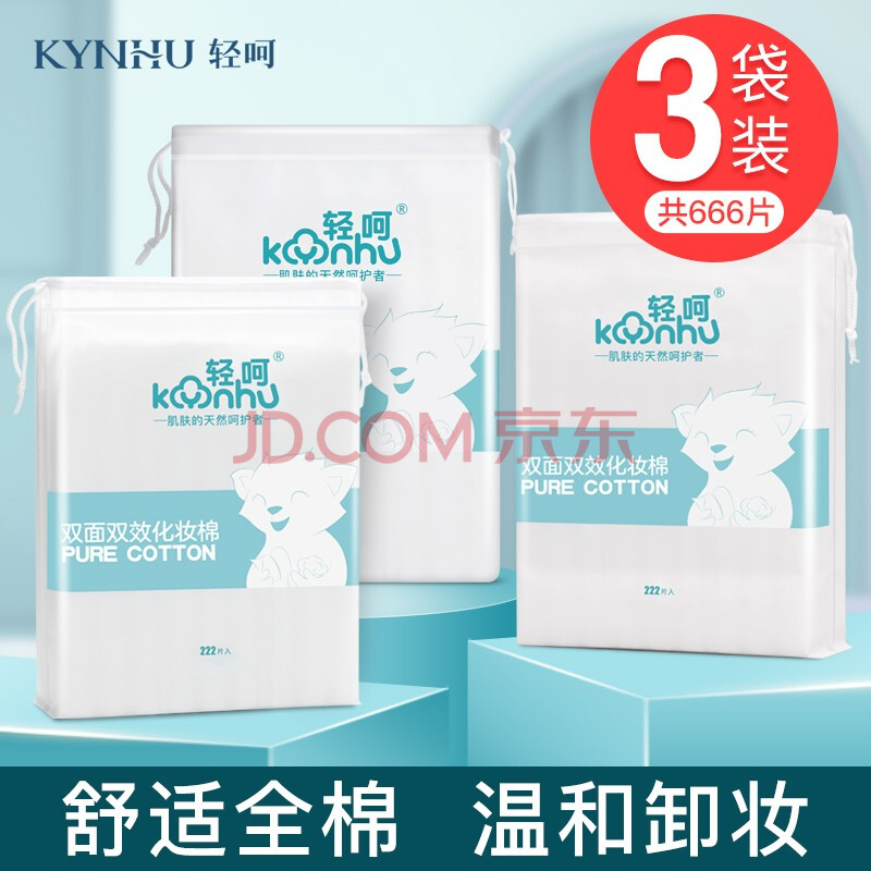 商品相册:轻呵化妆棉双层卸妆棉厚款三层压边湿敷棉清洁棉片222片*3袋第