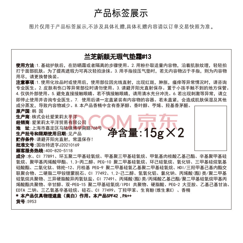 商品相册:兰芝气垫定妆bb霜高防晒高遮瑕NEO新颜无瑕#13米白色15g*2生日礼物第