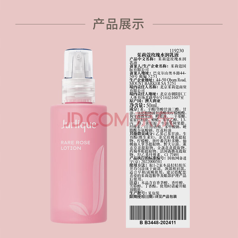 商品相册:茱莉蔻(Jurlique)玫瑰水润乳液50ML 妆前保湿舒缓补水滋润面部护肤品 生日礼物第1张/共4