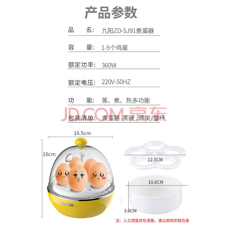商品相册:九阳(Joyoung)煮蛋器 早餐蒸蛋器家用小功率可煮5个煮蛋神器 ZD-5J91 【企业采购】 【支持一件采购】第