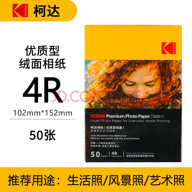 商品相册:KODAK柯达 4R/6英寸 250g 家用优质型RC绒面打印相片纸/喷墨打印照片纸/相纸 50张装9891-451第
