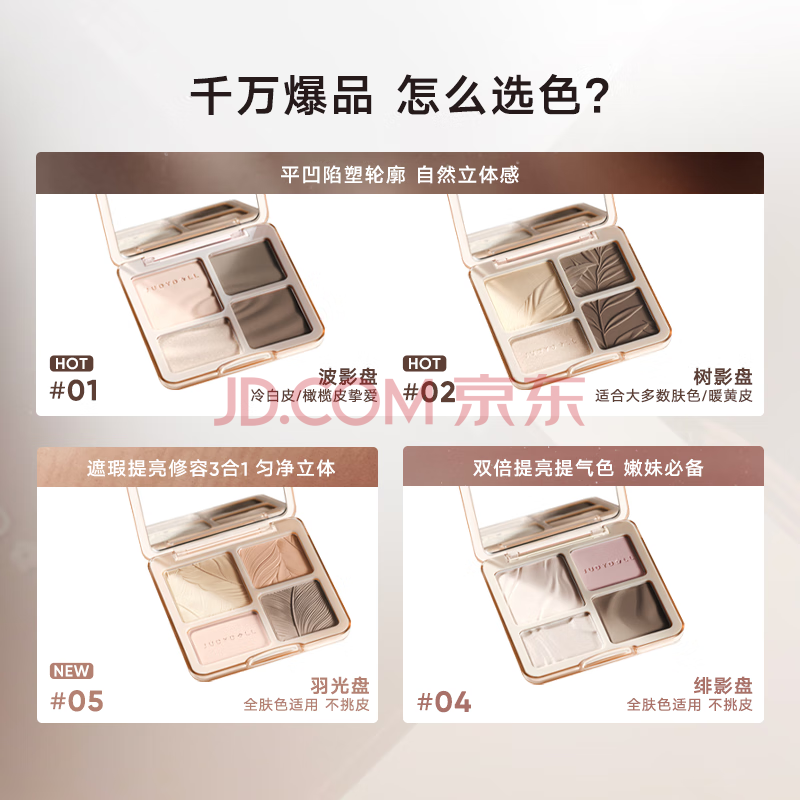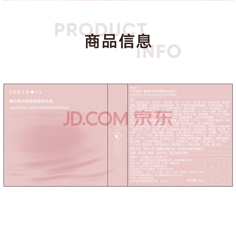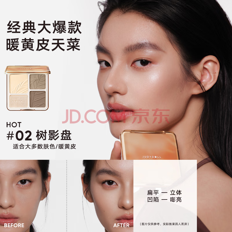 商品相册:橘朵(Judydoll)高光修容综合盘粉饼鼻影阴影提亮送女友礼物#01波影盘冷皮用第1张/共6